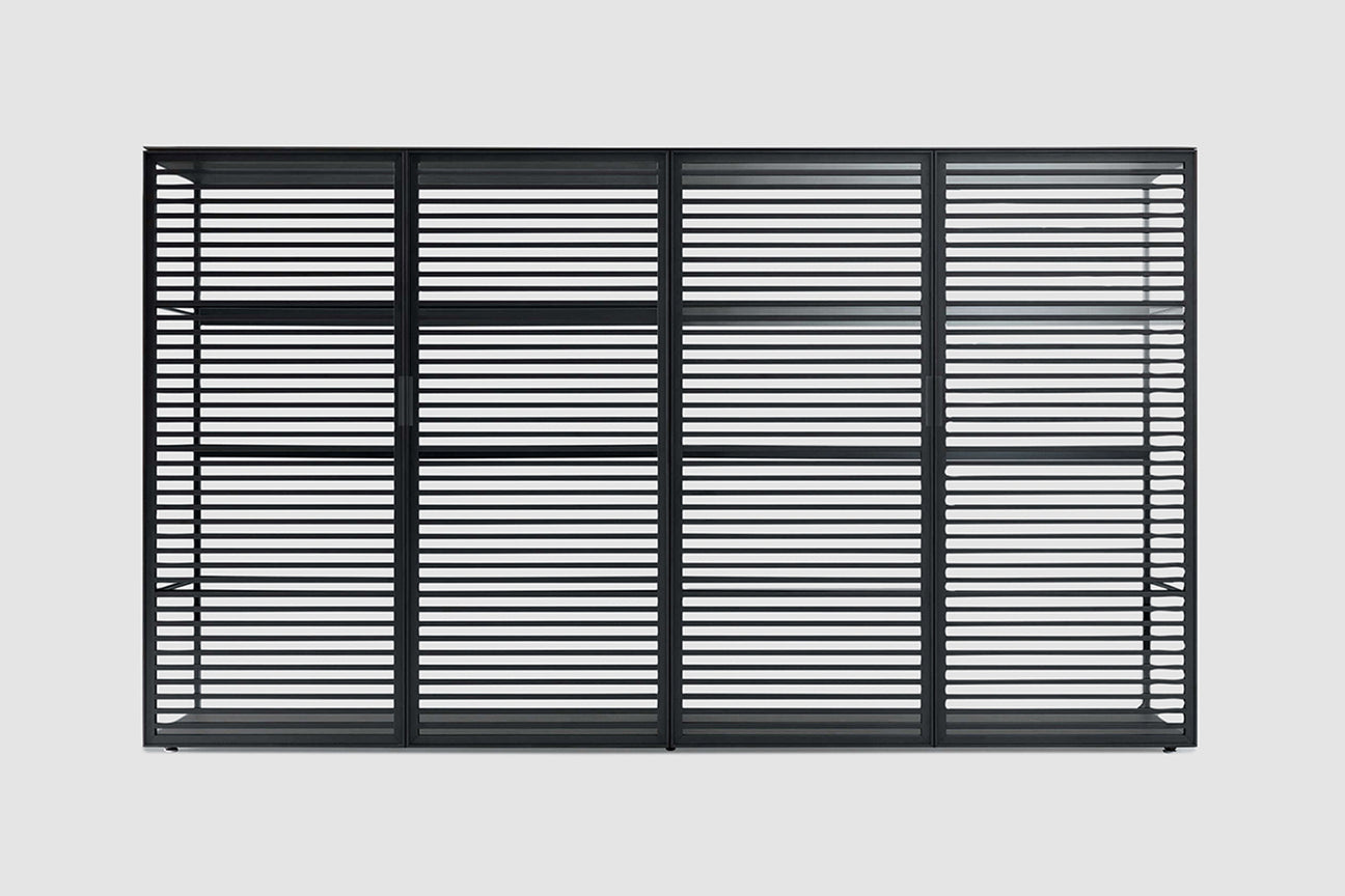 The Alambra system is available with a floor base or with legs and two, four or six doors. The project is available in five widths and five heights.